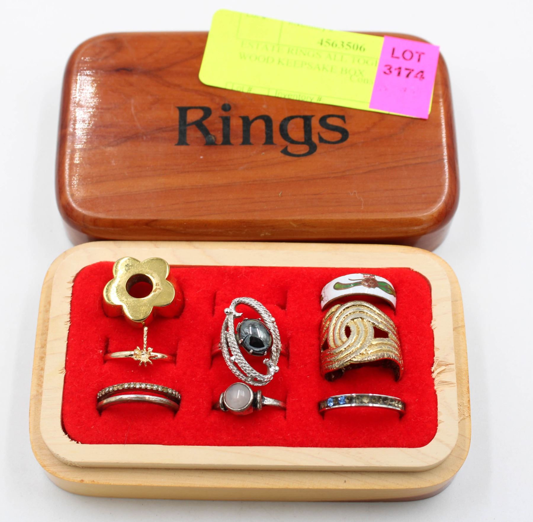 ESTATE RINGS ALL TOGETHER IN WOOD KEEPSAKE BOX