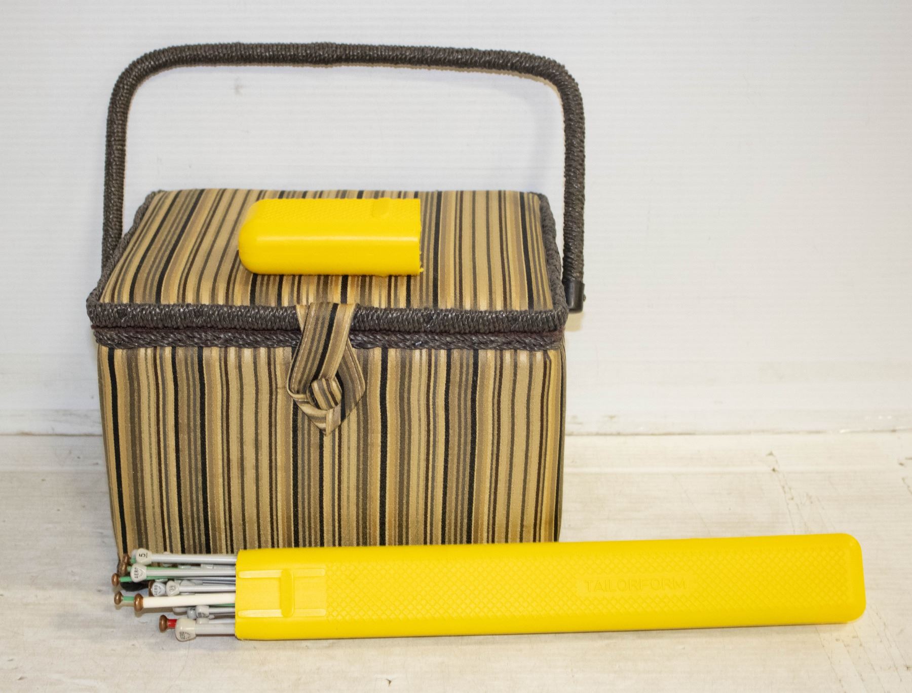 ESTATE SEWING BASKET + ASSORTED FABRIC NEEDLES