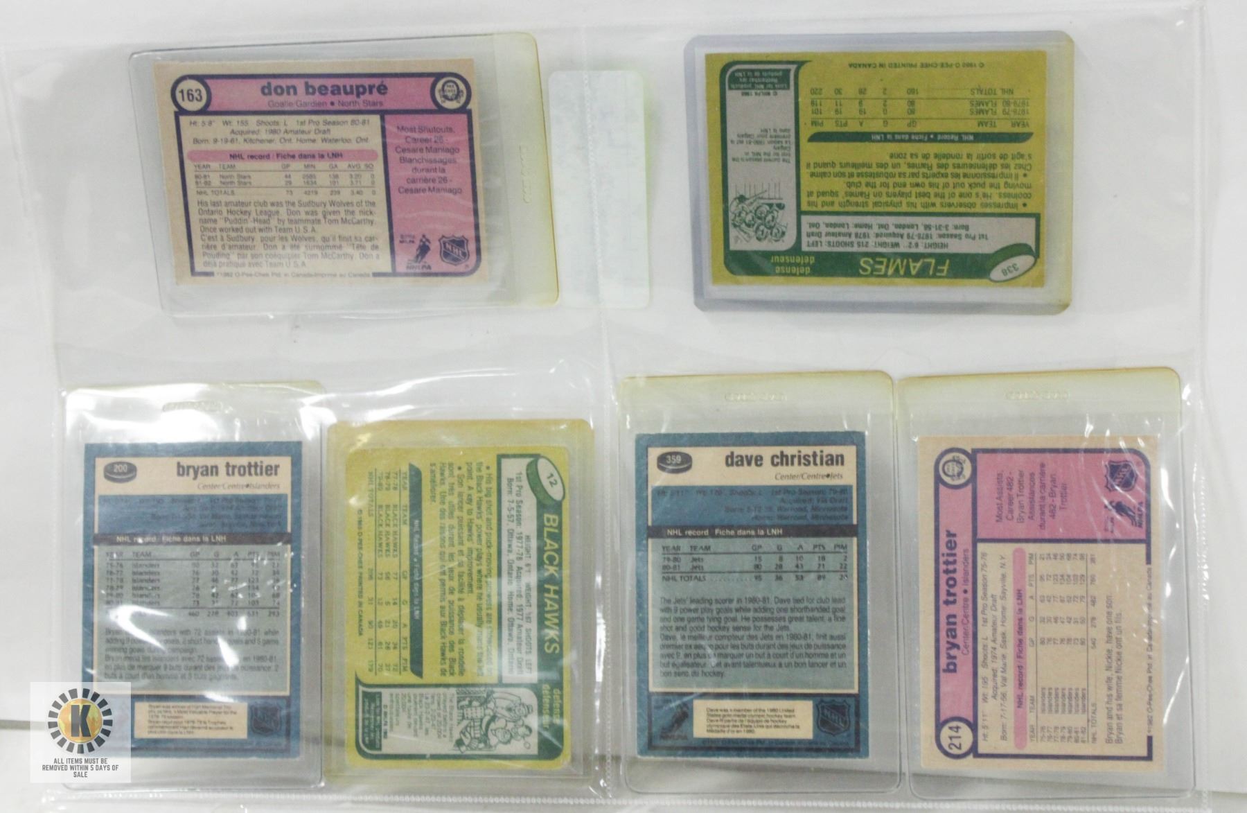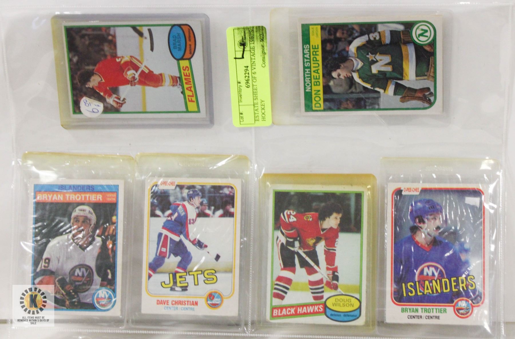CARDS INCL. BRAD MARSH, BRYAN TROTTIER, DON BEAUPRE, DAVE CHRISTIAN, DOUG WILSON, TROTTIER **ALL ITEMS MUST BE REMOVED BY 5PM SATURDAY, APRIL 3RD 2025. ALL REMAINING ITEMS WILL BE SUBJECT TO A $6.00 PER DAY STORAGE CHARGE. ANY ITEMS REMAINING AFTER MONDAY, MAY 19TH 2025 WILL BE CONSIDERED FORFEITED. NO REFUNDS WILL BE ISSUED FOR FORFEITED ITEMS. TO SCHEDULE A PICK UP APPOINTMENT CLICK HERE