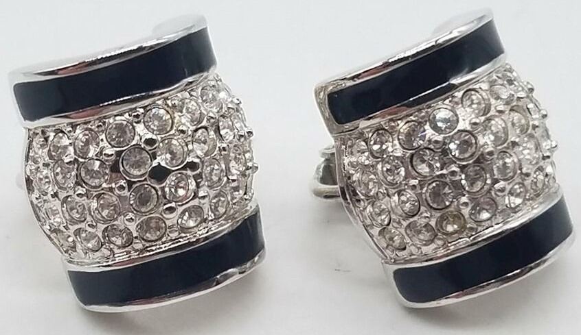 ESTATE SILVERTONE SWAROVSKI CLIP EARRINGS.