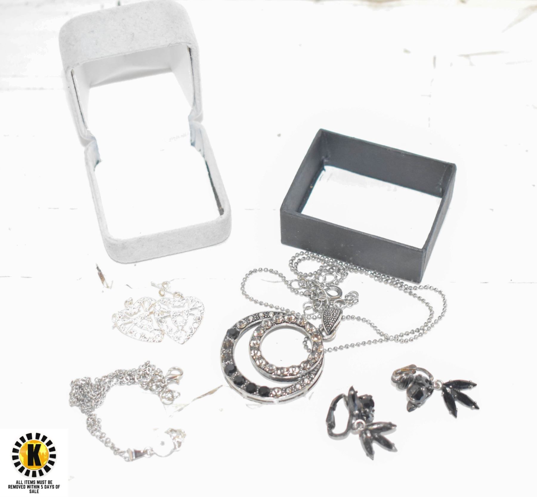 ESTATE SKULL SOLITAIRE NECKLACE, HEARTS EARRINGS,