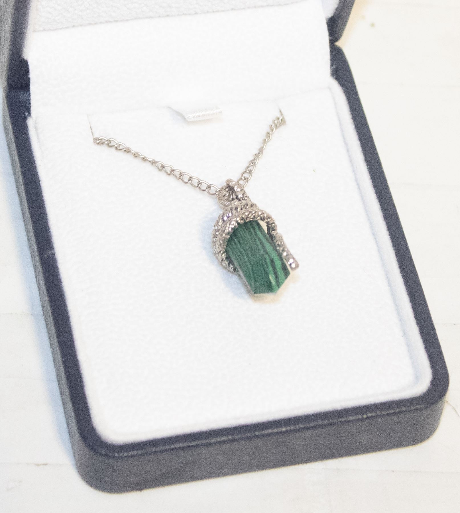 ESTATE SNAKE WRAPPED MALACHITE PENDANT NECKLACE