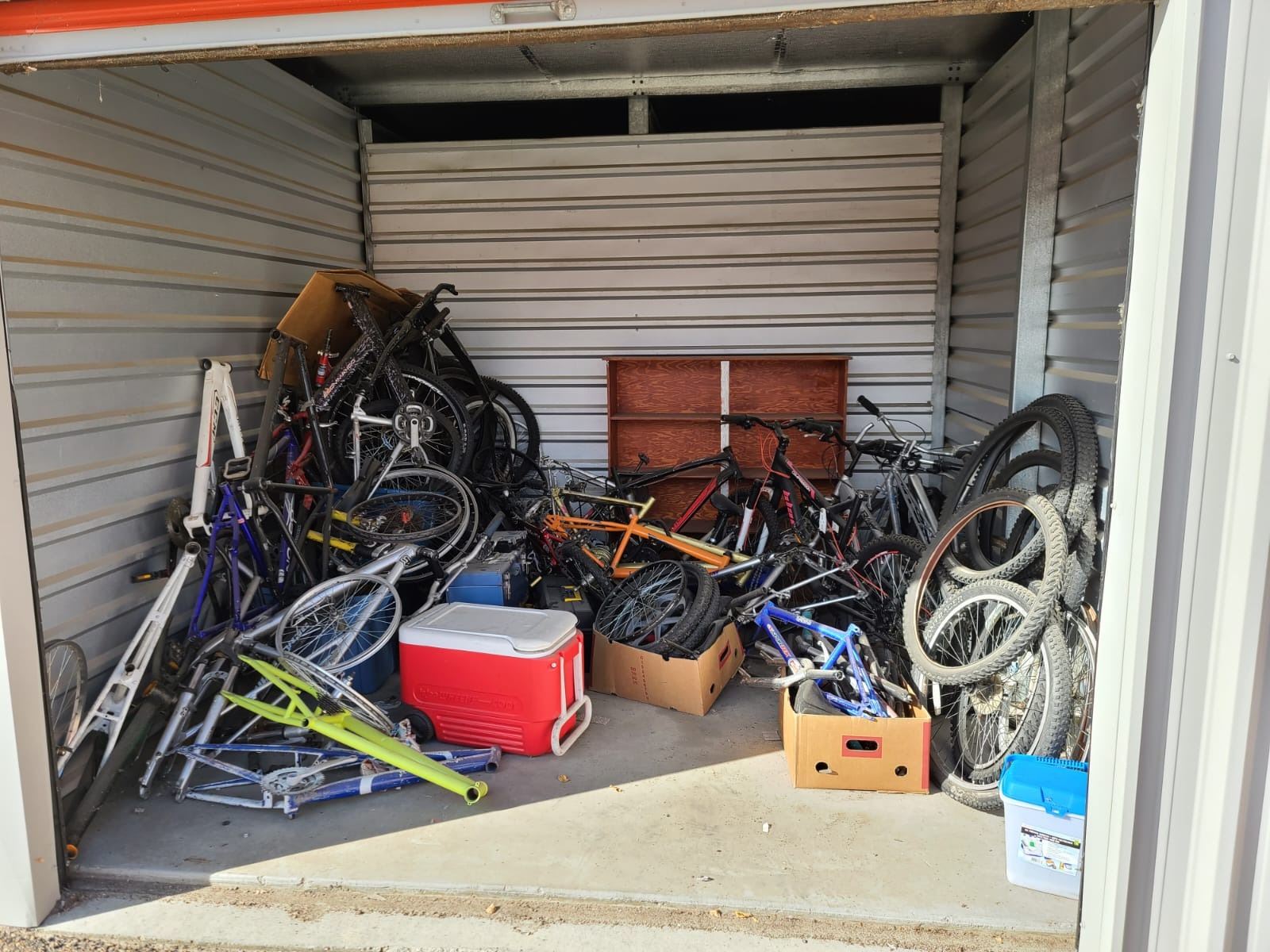 APPEARS TO BE MOSTLY BICYCLES, BIKE PARTS AND POSSIBLY SOME TOOLS. **ATTENTION** $250.00 DEPOSIT REQUIRED BEFORE KEY WILL BE GIVEN, PROOF OF CLEANED UNIT WILL BE REQUIRED TO HAVE DEPOSIT RETURN. UNIT MUST BE CLEARED BY MONDAY FEBRUARY 14TH OR DEPOSIT IS FORFEITED