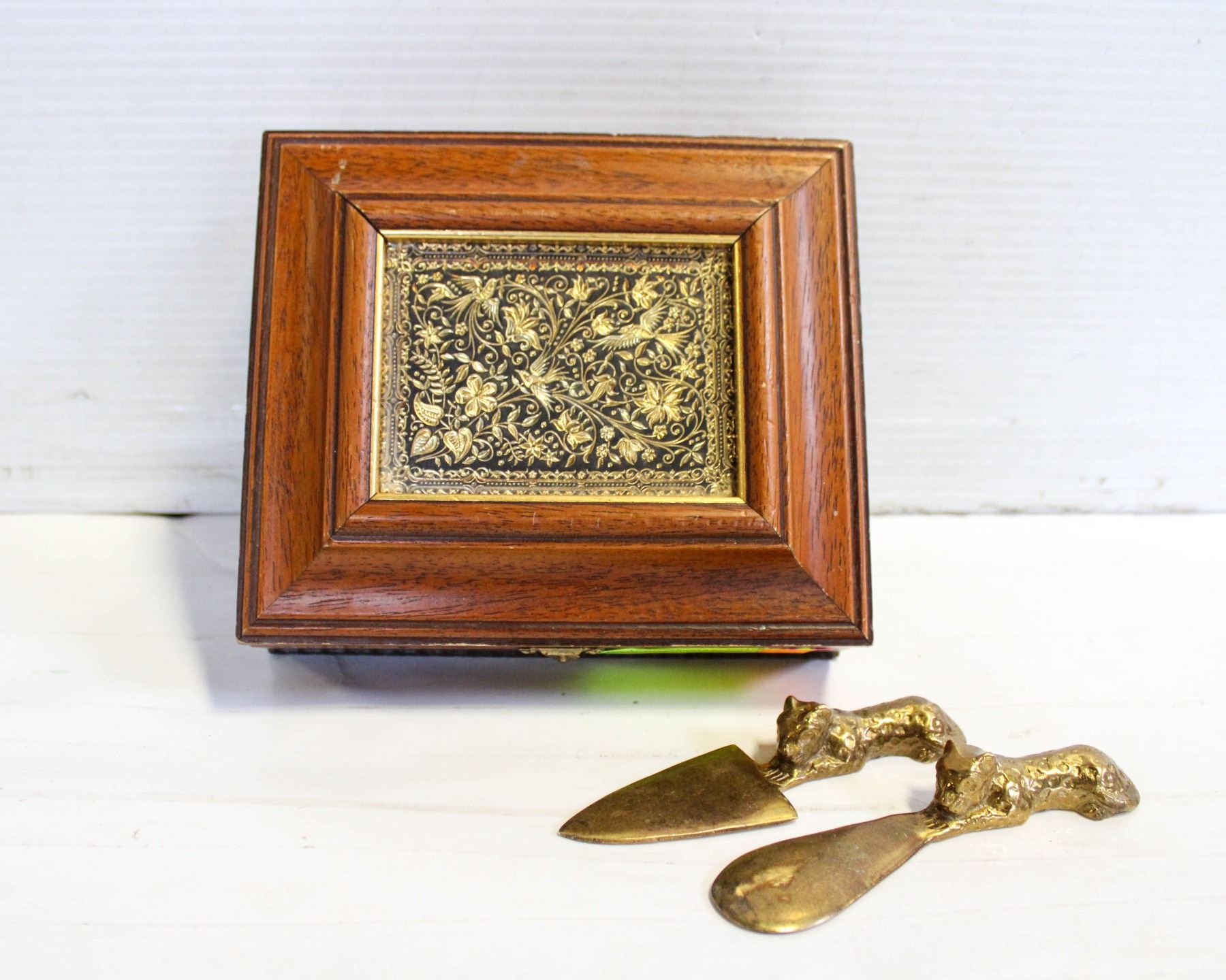 OF PARADISE WOOD KEEPSAKE BOX-ESTATE WITH METAL ORNAMENTAL SPREADERS