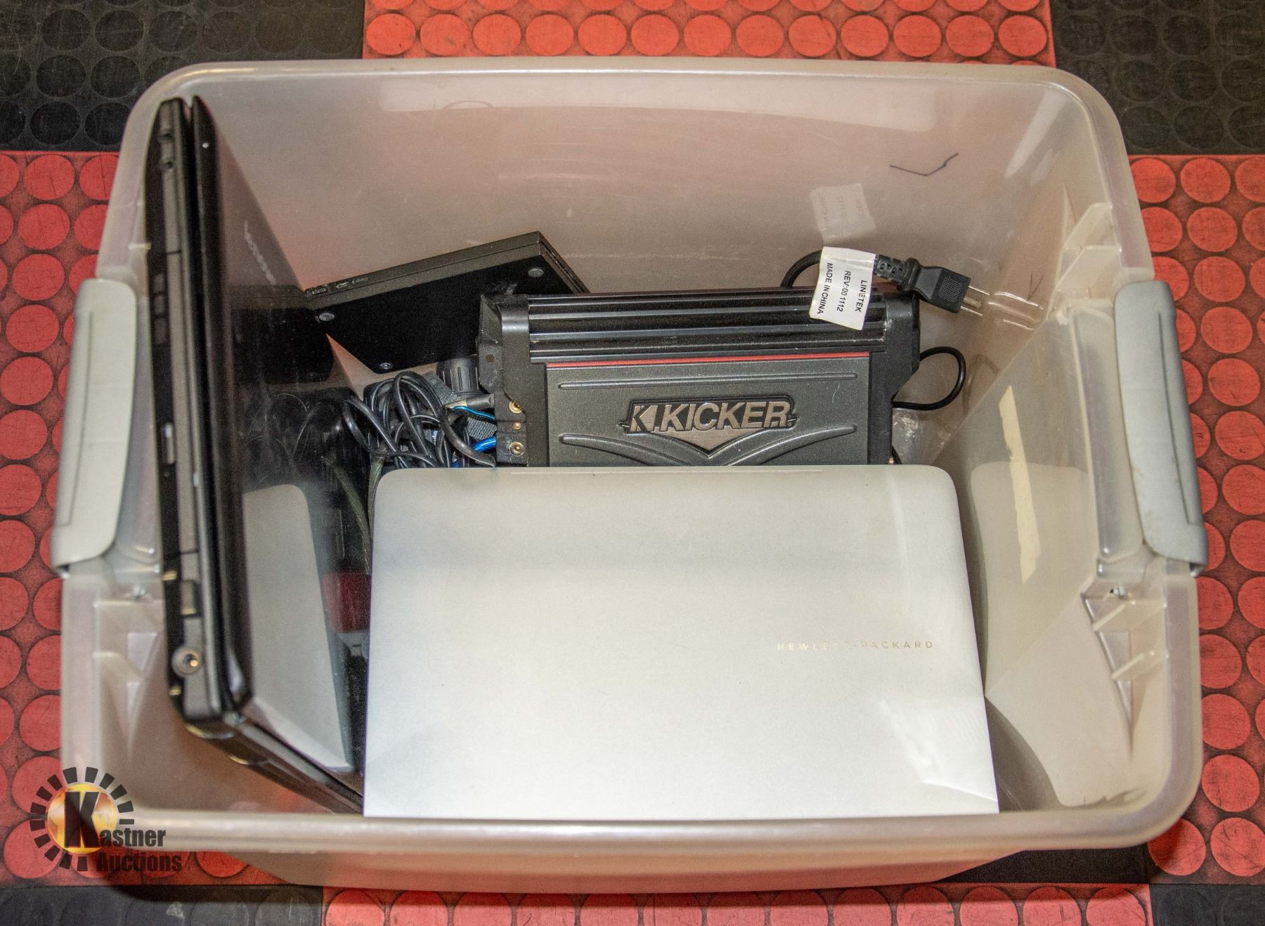 INCL. 17" LENOVO LAPTOP (LOCKED), HEWLITT PACKARD SPECTRE SLIM WITH i7 CORE PROCESSOR LAPTOPS (LOCKED WITH PASSWORD), "KICKER" 400 WATT SUBWOOFER AMP, FOLD-UP KEYBOARD COMPUTER SPEAKERS, ETC. THESE ITEMS ARE UNTESTED **ALL ITEMS MUST BE REMOVED BY 5PM SATURDAY, FEBRUARY 24TH 2024. ALL REMAINING ITEMS WILL BE SUBJECT TO A $6.00 PER DAY STORAGE CHARGE. ANY ITEMS REMAINING AFTER MONDAY, MARCH 11TH, 2023 WILL BE CONSIDERED FORFEITED. NO REFUNDS WILL BE ISSUED FOR FORFEITED ITEMS. TO SCHEDULE A PICK UP APPOINTMENT CLICK HERE