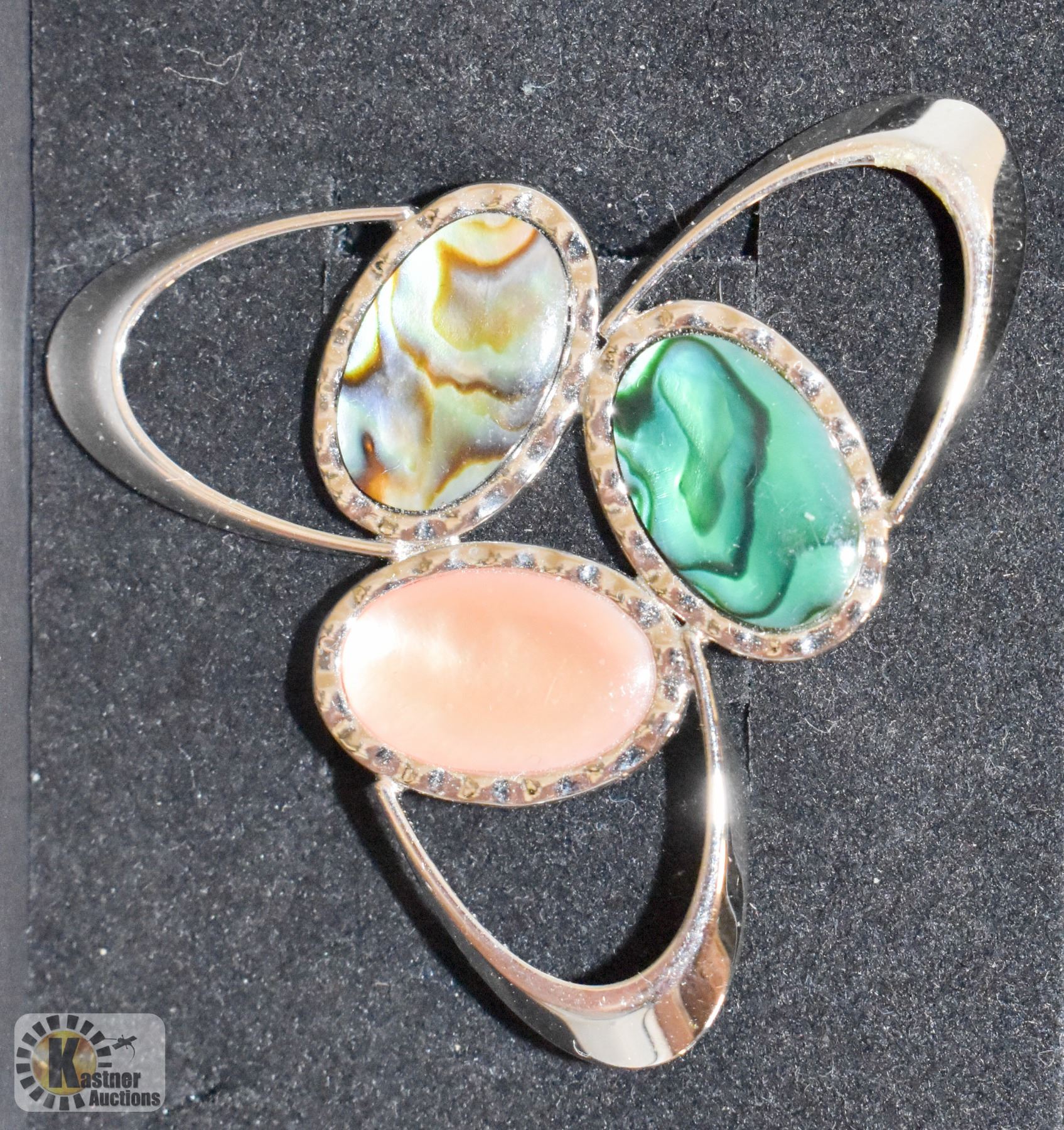 ESTATE TRI COLOR STONES IN SILVER TONE BROOCH