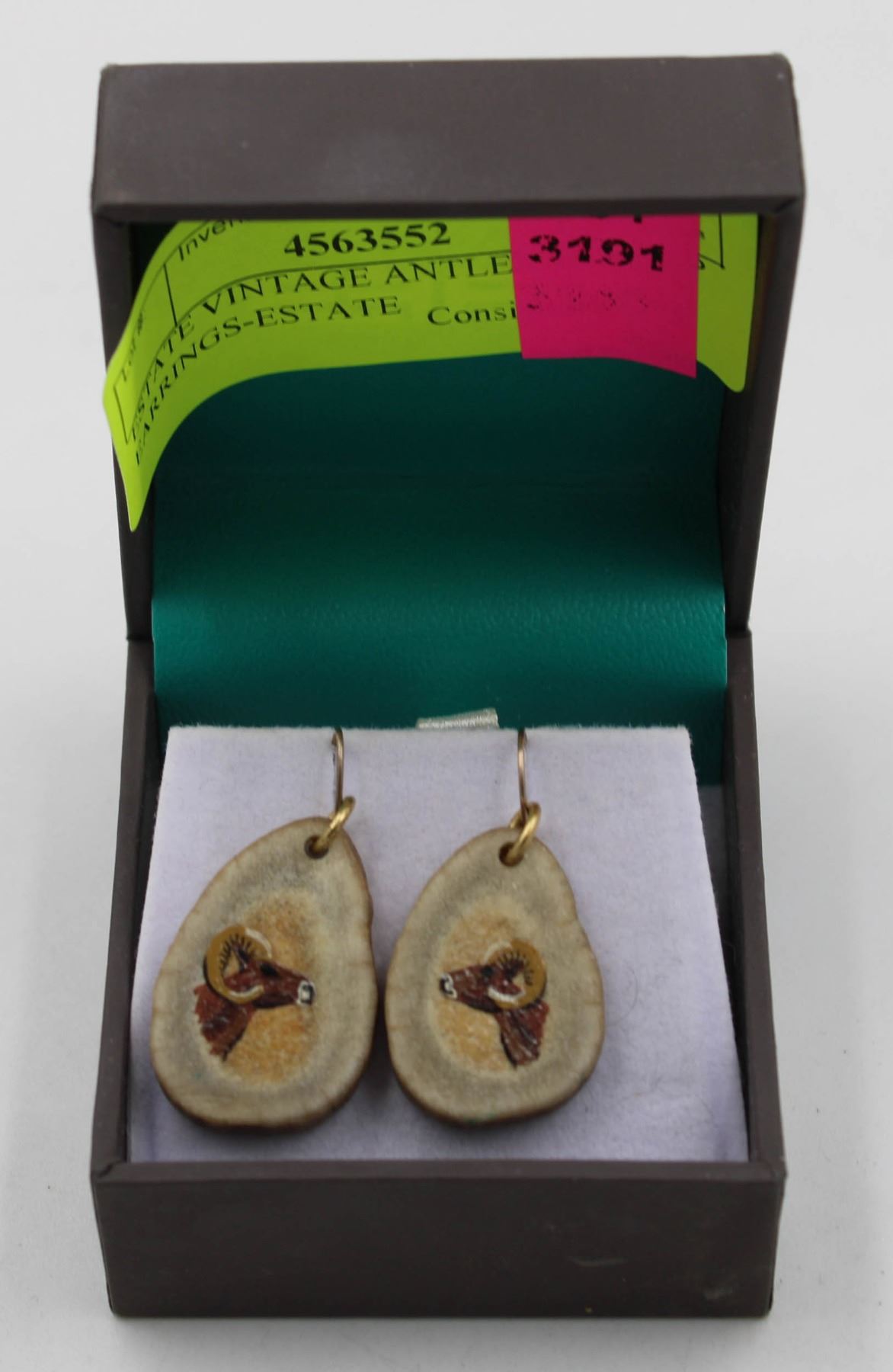 ESTATE VINTAGE ANTLER 10 HOOP EARRINGS-ESTATE