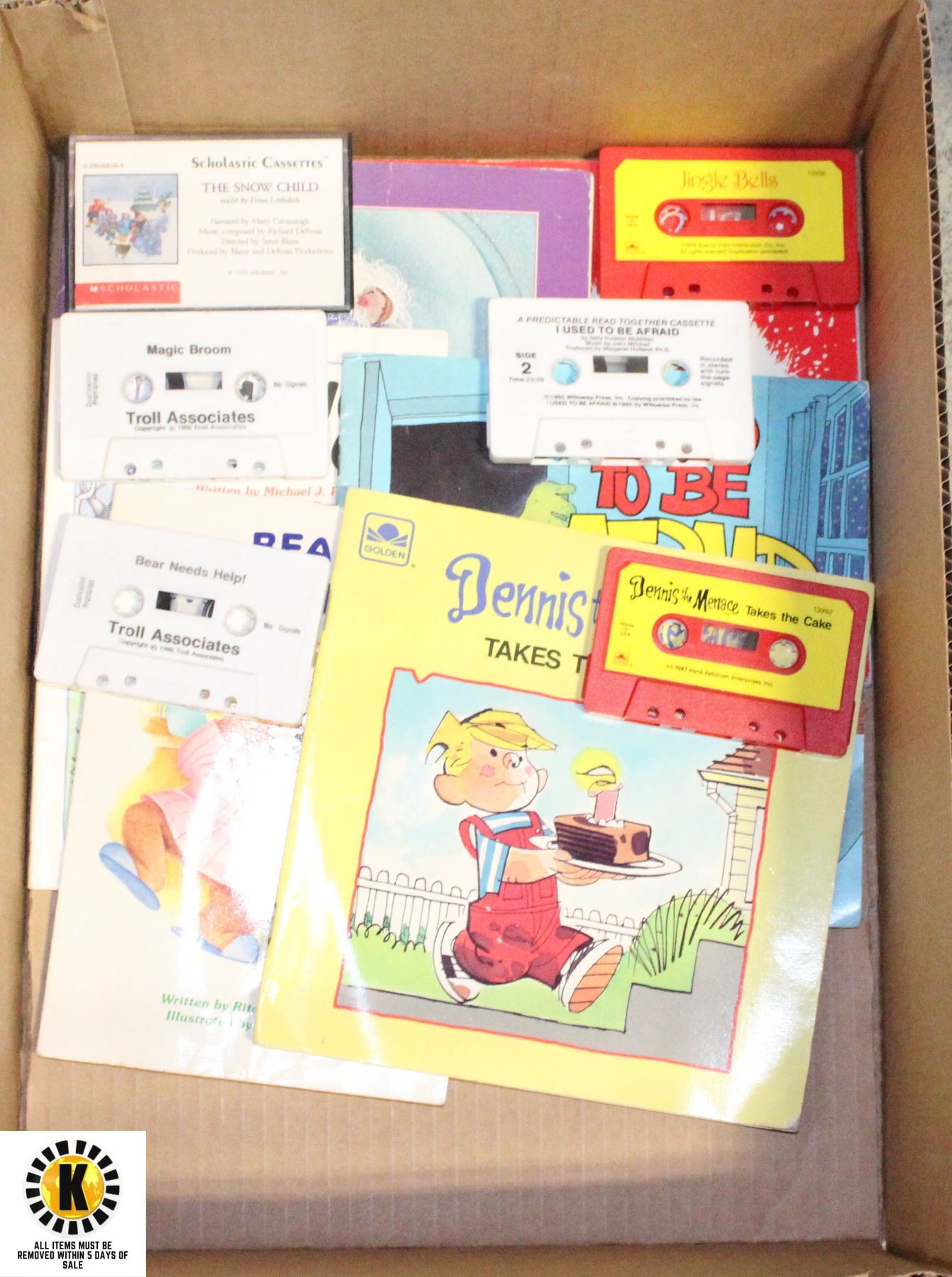 BOOKS WITH CASSETTE TAPES - INCLUDES BEAR NEEDS HELP, DENNIS THE MENACE, I USED TO BE AFRAID, JINGLE BELLS, MAGIC BROOM, THE SNOW CHILD