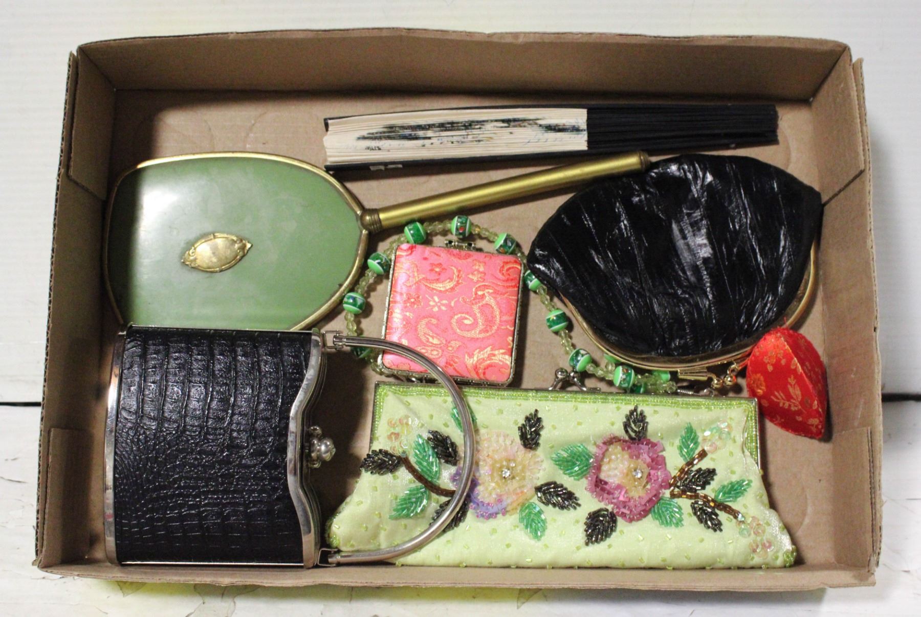 ESTATE VINTAGE HAND MIRROR, PURSES, CHANGE