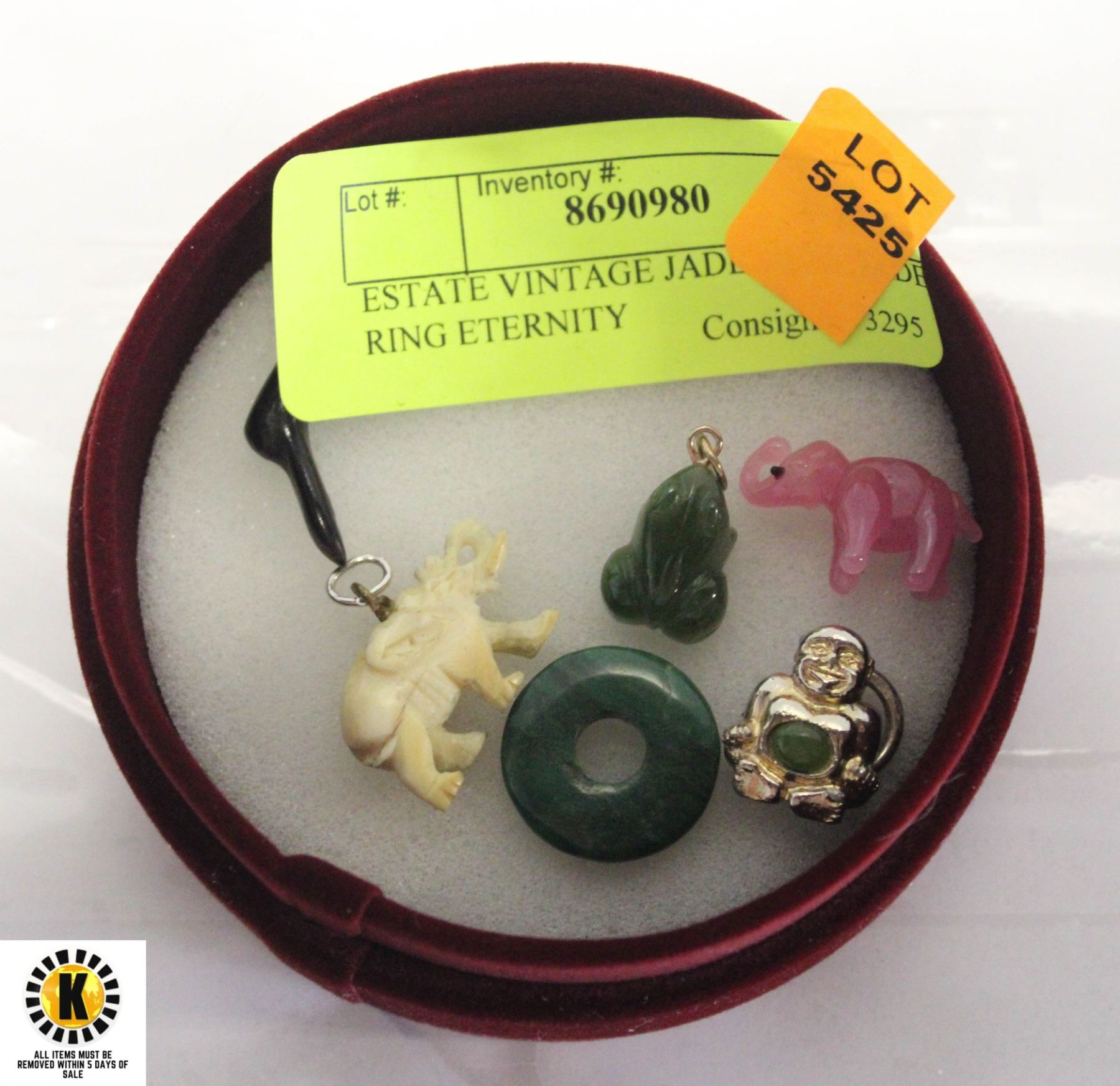 ESTATE VINTAGE JADE FROG, JADE RING ETERNITY