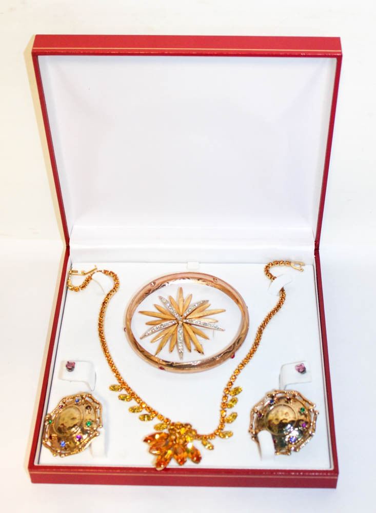 ESTATE VINTAGE JEWELRY IN RED CASE-ESTATE