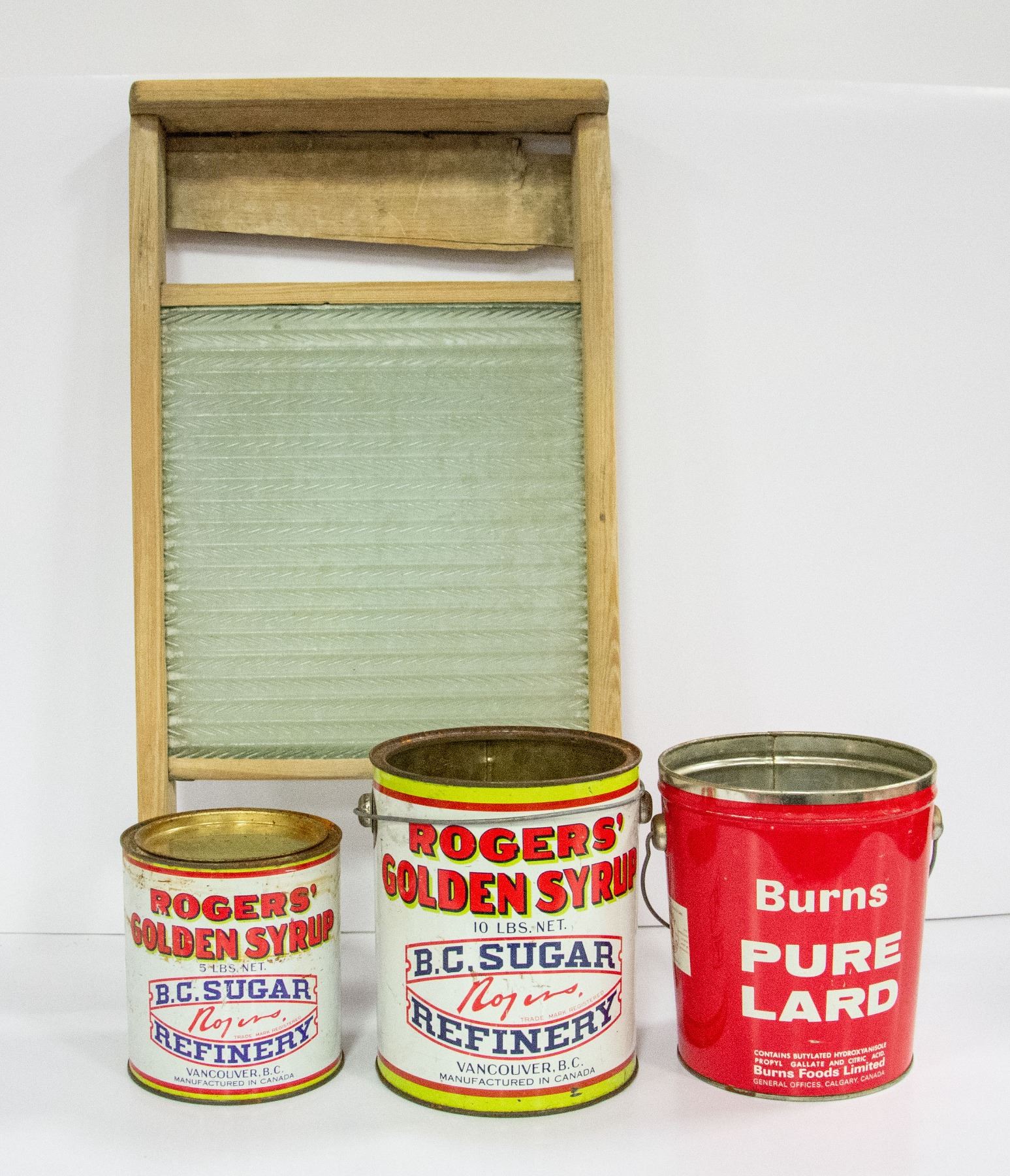 LOT INCLUDES THREE TINS ROGERS SYRUP IN TWO SIZES AND SWIFTS LARD