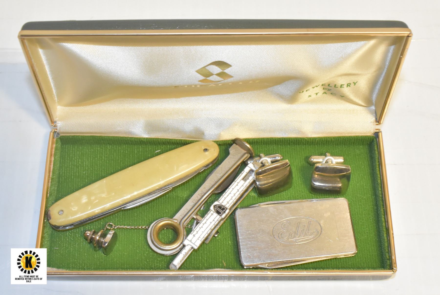 ESTATE VINTAGE MENS KNIVES, CUFFLINK SET &