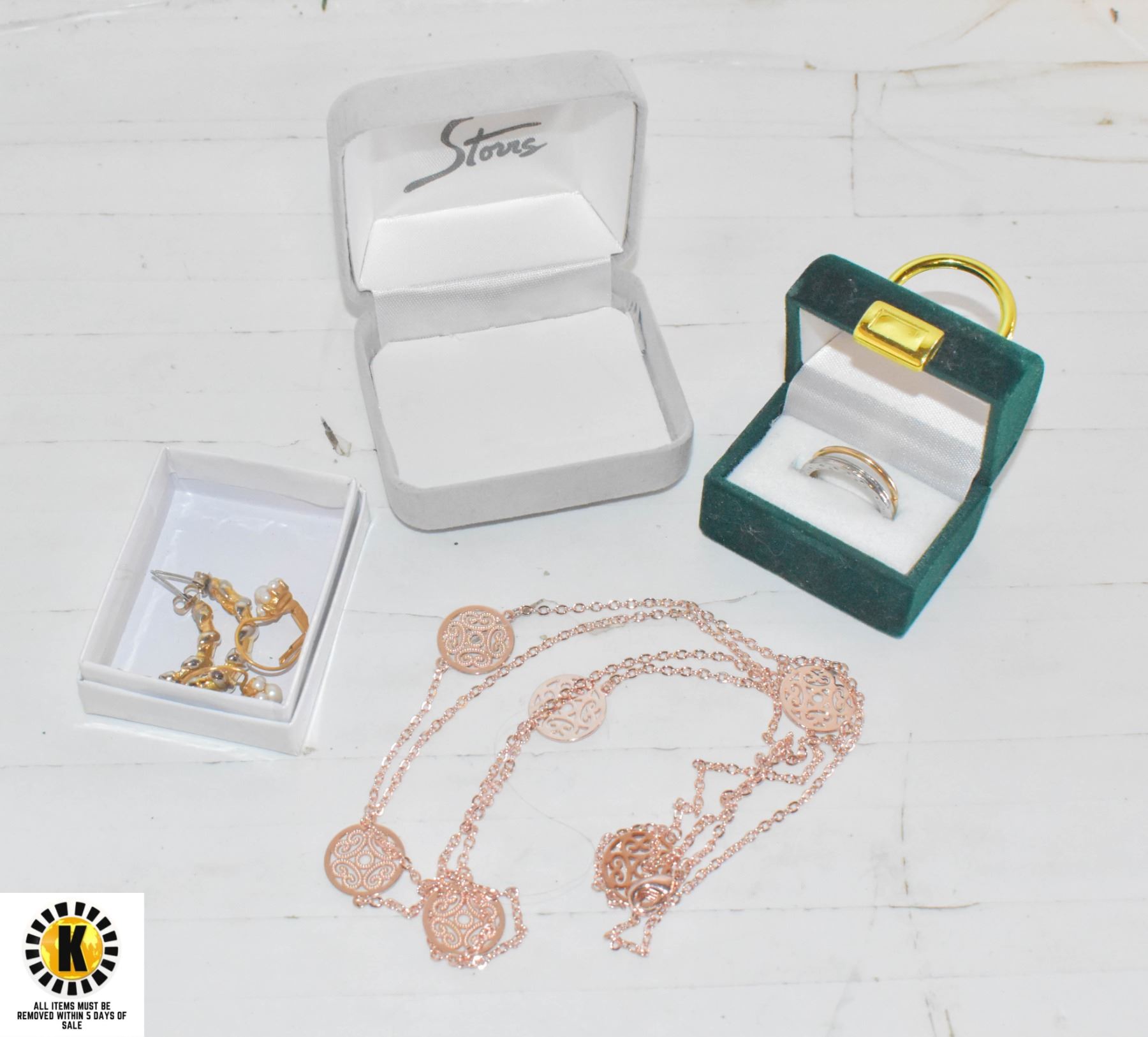 TONE EARRINGS & ROSE GOLD NECKLACE-ESTATE