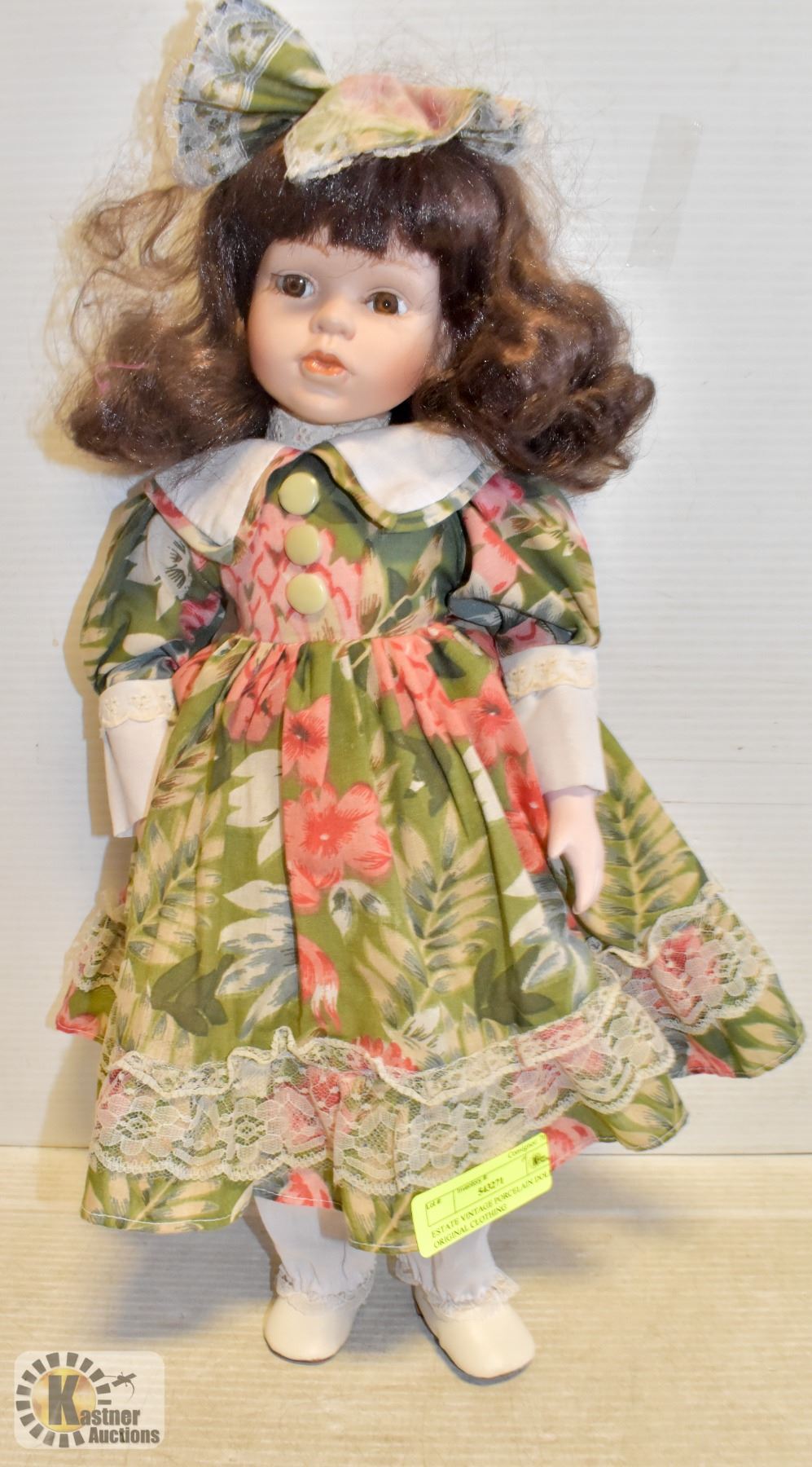 ESTATE VINTAGE PORCELAIN DOLL, ORIGINAL CLOTHING