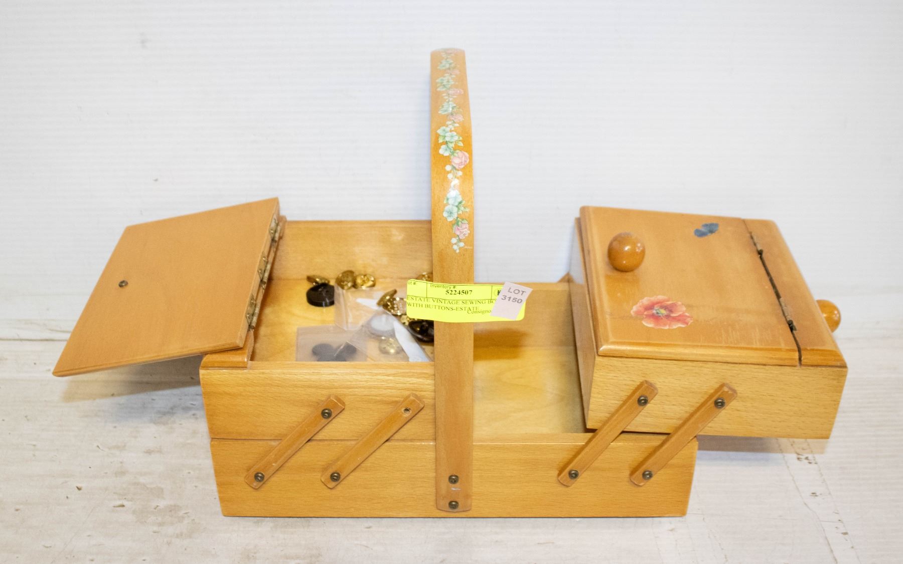 ESTATE VINTAGE SEWING BOX WITH BUTTONS-ESTATE