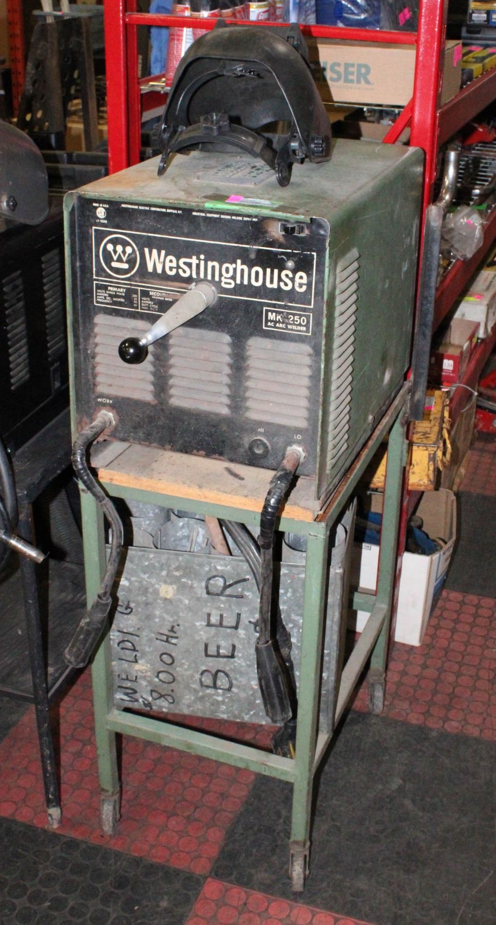 230V SINGLE PHASE ON ROLLING CART WITH HELMENTS AND ACCESSORIES 250 AMP WELDER **ALL ITEMS MUST BE REMOVED BY 5PM SATURDAY, JULY 12TH 2025. ALL REMAINING ITEMS WILL BE SUBJECT TO A $6.00 PER DAY STORAGE CHARGE. ANY ITEMS REMAINING AFTER MONDAY, JULY 28TH 2025 WILL BE CONSIDERED FORFEITED. NO REFUNDS WILL BE ISSUED FOR FORFEITED ITEMS. TO SCHEDULE A PICK UP APPOINTMENT CLICK HERE