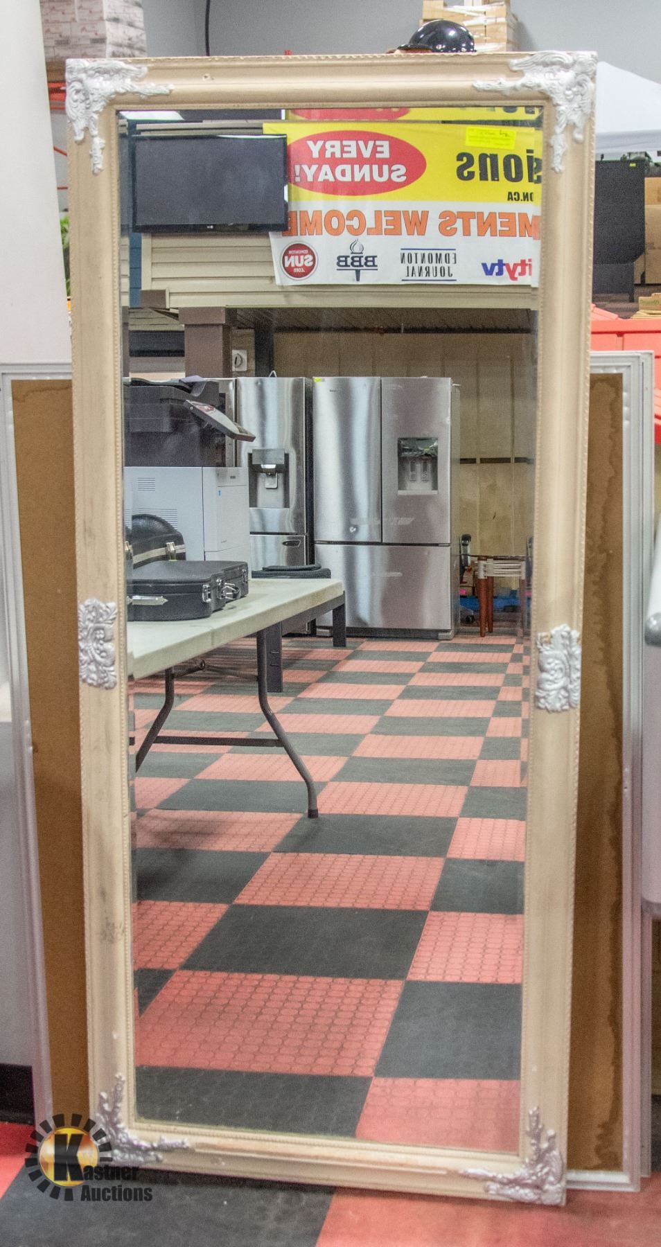 MIRROR - WOOD FRAME, MINOR DAMAGE TO FRAME, (28"X64") **ALL ITEMS MUST BE REMOVED BY 5PM SATURDAY, DECEMBER 2ND 2023. ALL REMAINING ITEMS WILL BE SUBJECT TO A $6.00 PER DAY STORAGE CHARGE. ANY ITEMS REMAINING AFTER MONDAY, DECEMBER 18TH, 2023 WILL BE CONSIDERED FORFEITED. NO REFUNDS WILL BE ISSUED FOR FORFEITED ITEMS. TO SCHEDULE A PICK UP APPOINTMENT CLICK HERE
