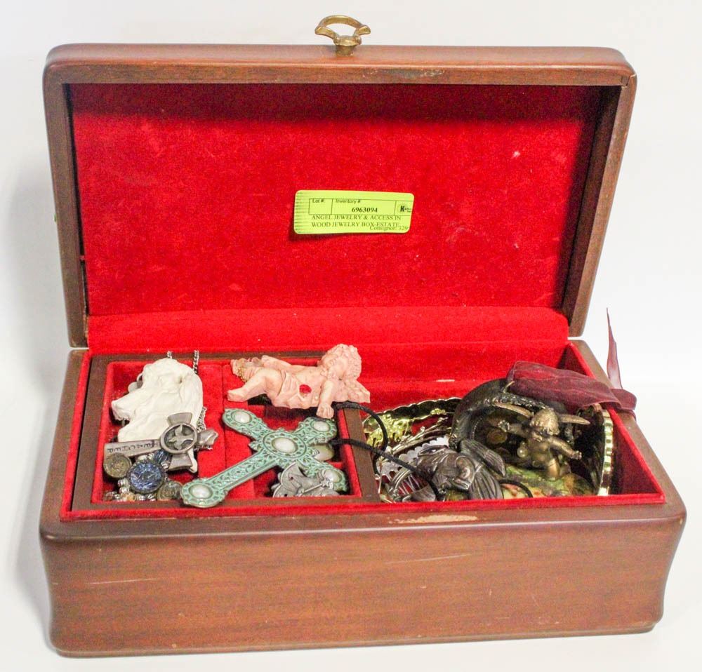 ESTATE WOODEN JEWELRY BOX W/ CONTENTS