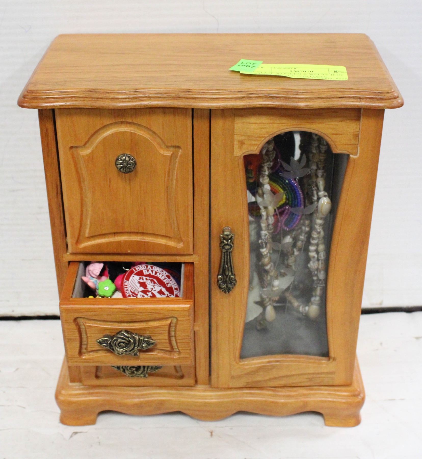 ESTATE WOODEN JEWELRY BOX WITH VARIOUS CONTENTS