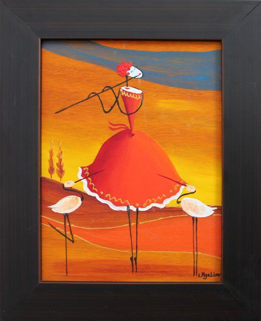 ESTHER MYATLOV "THE FLAUTIST" ORIGINAL OIL ON WOOD HAND SIGNED BY THE ARTIST. SIZE: 10" X 8.25", COMES WITH COA. THIS PIECE IS FRAMED AND READY TO HANG. J540
