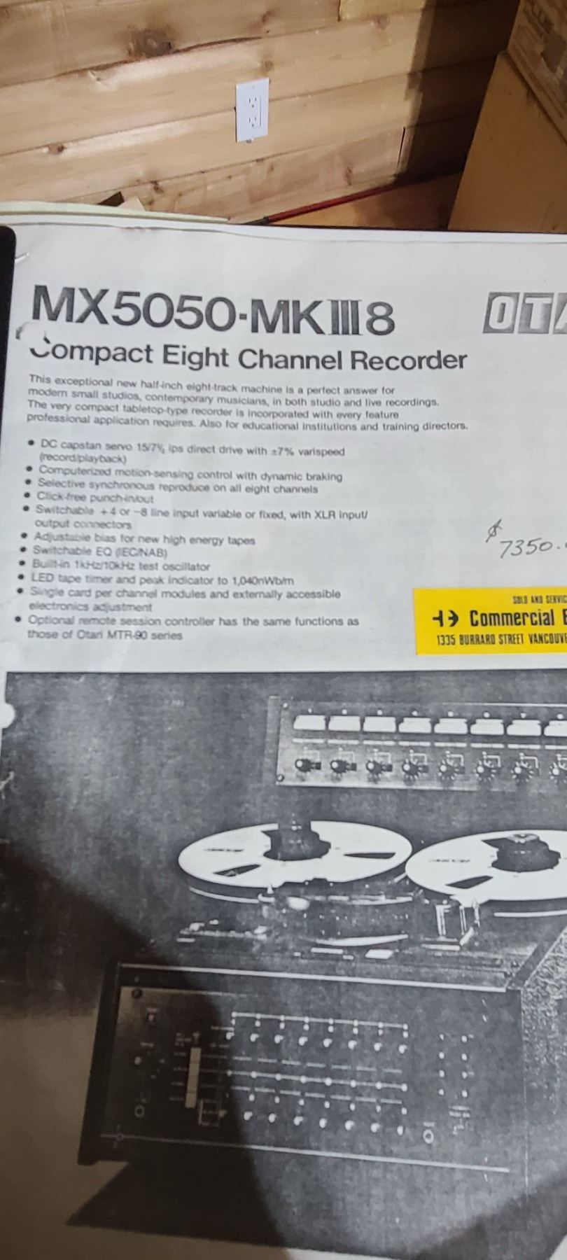 ESTIMATED $7,000 SOUND RECORDING STUDIO CONSTISING OF: TASCAM TEAC PRODUCTION M-50 MIXER, MX 5050, S