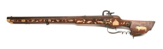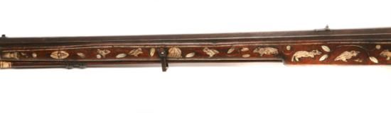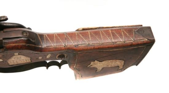 16th Century German - Wheellock - .70 cal - rifle, 28.75in octagon barrel - wheel lock carbine - swithout key and iron pyrite - mechanical wear to breech w/ wood ram rod with bone tip, sling bar, and fancy fingered hand guard -