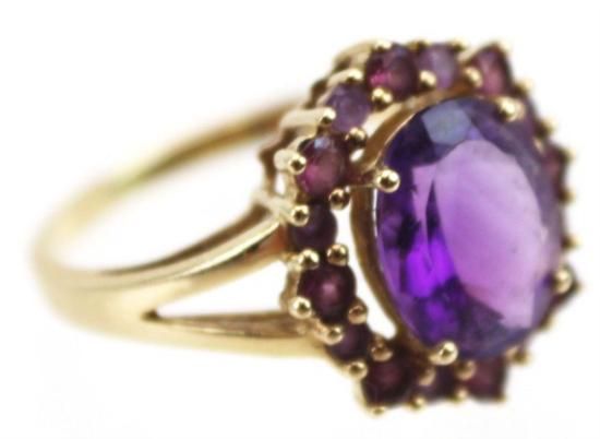 LADIES 10K GOLD AMETHYST CLUSTER COCKTAIL RING
