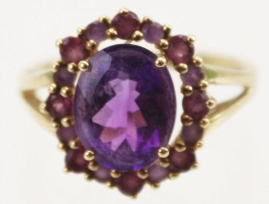 LADIES 10K GOLD AMETHYST CLUSTER COCKTAIL RING