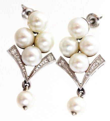 14K WHITE GOLD PEARL EARRINGS W/DIAMOND ACCENTS