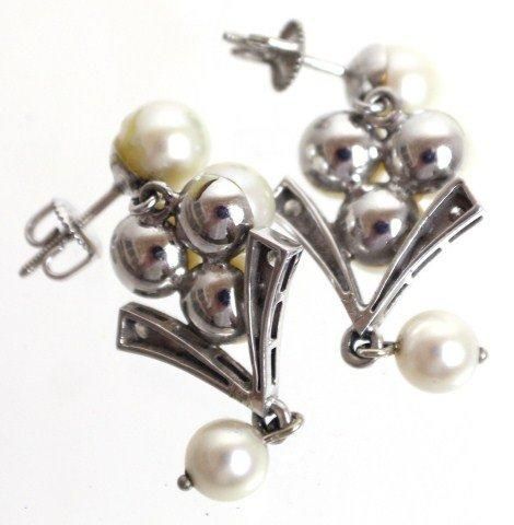 14K WHITE GOLD PEARL EARRINGS W/DIAMOND ACCENTS
