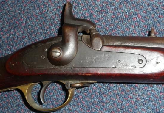 ET0503120091 A 19th Century Enfield Percussion Cap Two Band Musket, the 83cm steel barrel stamped 5447 on the tang, the steel lock plate stamped with crowned VR 1860 ENFIELD and crowned arrowhead, walnut full stock with brass fore-end tip, trigger guard and butt plate, with one steel sling swivel and ramrod