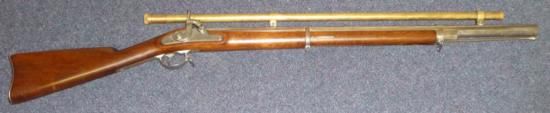 ET0503120095 A US Springfield 1864 Percussion Cap Target Rifle, the 78.5cm heavy steel barrel stamped 1864 P, the lock plate engraved with an eagle with shield to its breast and stamped 1864 US SPRINGFIELD, the two band wood full stock with steel trigger guard and sling swivels, the left side with two inspector's cartouches, set with a brass scope