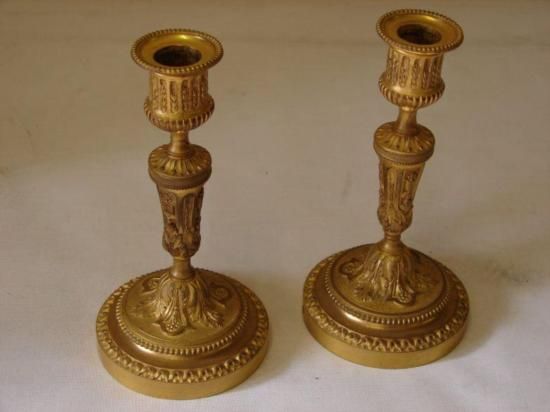 Pair of Loius XVI style Ormulu Candlesticks c 1880