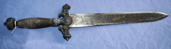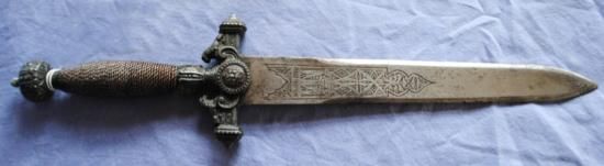 Ornate Spanish Dagger, 18th Century, fully engraved blade, perfect wire wrapped grips, double edged. Approx 17 inches long