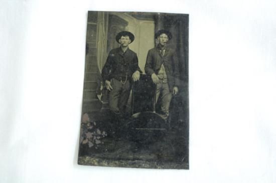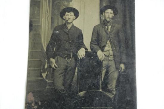 ET0523120033 TIN TYPE 2 YOUNG MEN WITH CIGARS 3.5 X 2.5 INCHES,