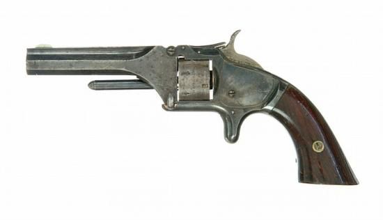 ET0523120038 SMITH AND WESSON MODEL NO. 1 SECOND - .22 caliber, seven-shot cylinder with British proof marks, 3.5in octagonal barrel, blued finish, rosewood grips. S/n 33705.