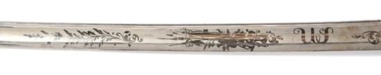 ET0606120010 AMES M1850 FIELD & STAFF OFFICERS SWORD, belonging to Harry Appel of Clermont Co., Ohio. This fine example of an Ames sword is marked on the blue steel scabbard ~Ames Mfg.Co. Chicopee, Mass~. The sword is 38in long with cast brass hilt with single piece of quillion, guard with ~US~, knuckle bow and pommel. Grip is wire wrapped shark skin and blade has etched patriotic motifs. The 33.75in scabbard has gilt brass throat, top band, middle band, each with carrying ring and drag. It is rare to find a marked scabbard in this fine a condition with over 90% original bluing.