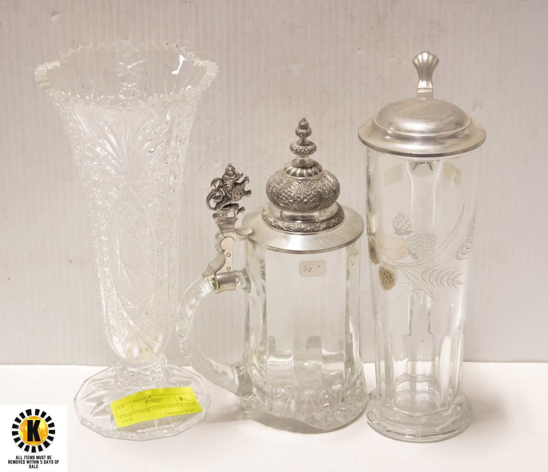 BEER STEINS BOTH HAVE CHIPS AT NEAR BASE