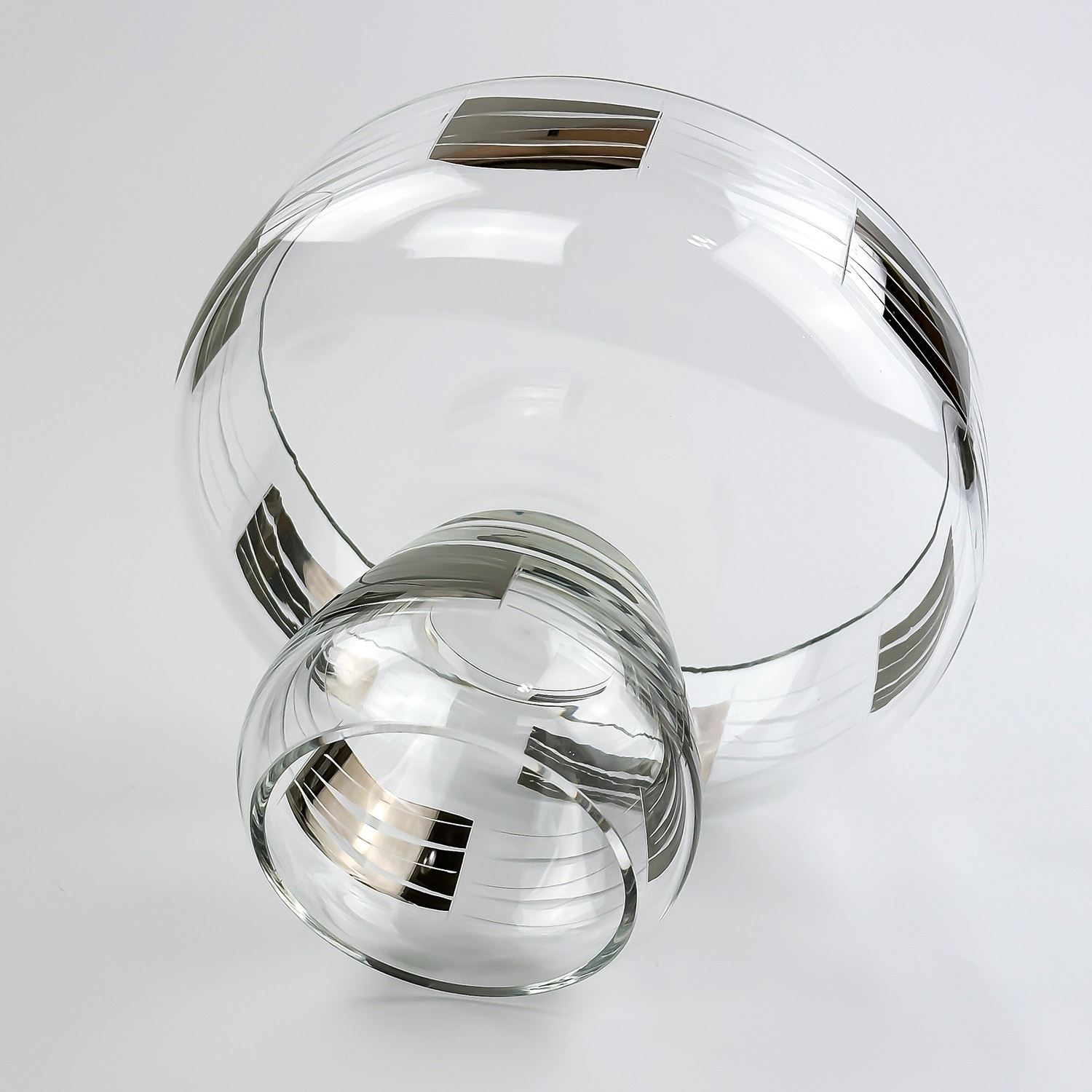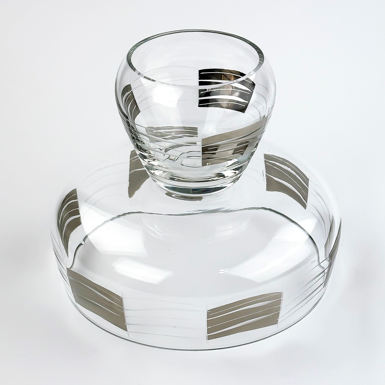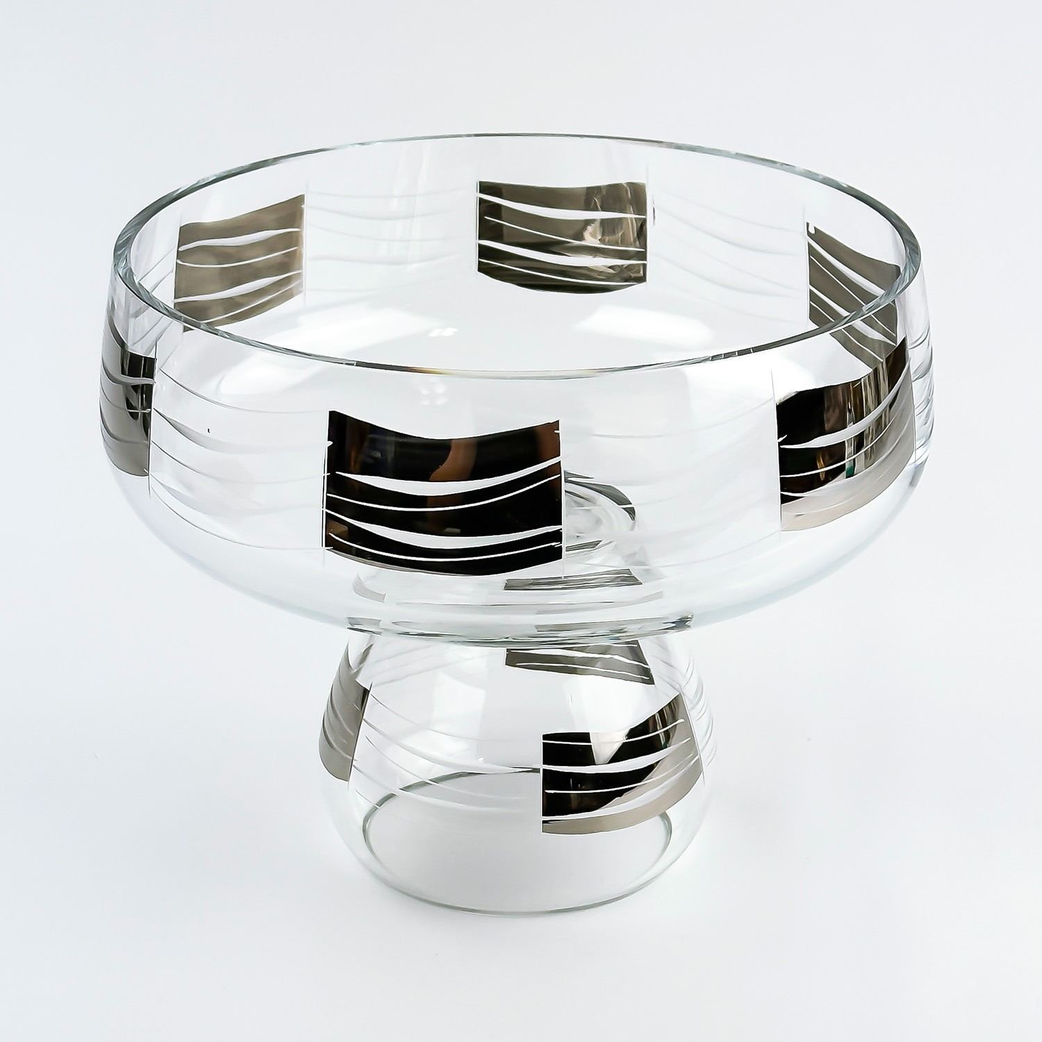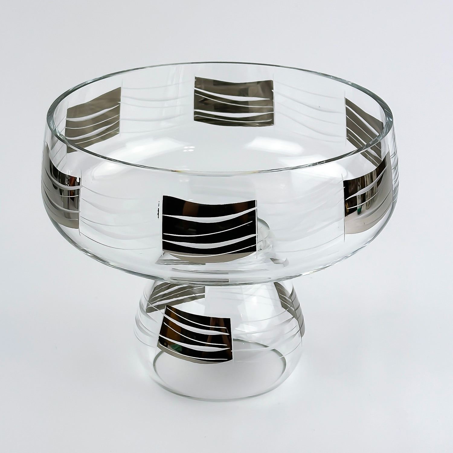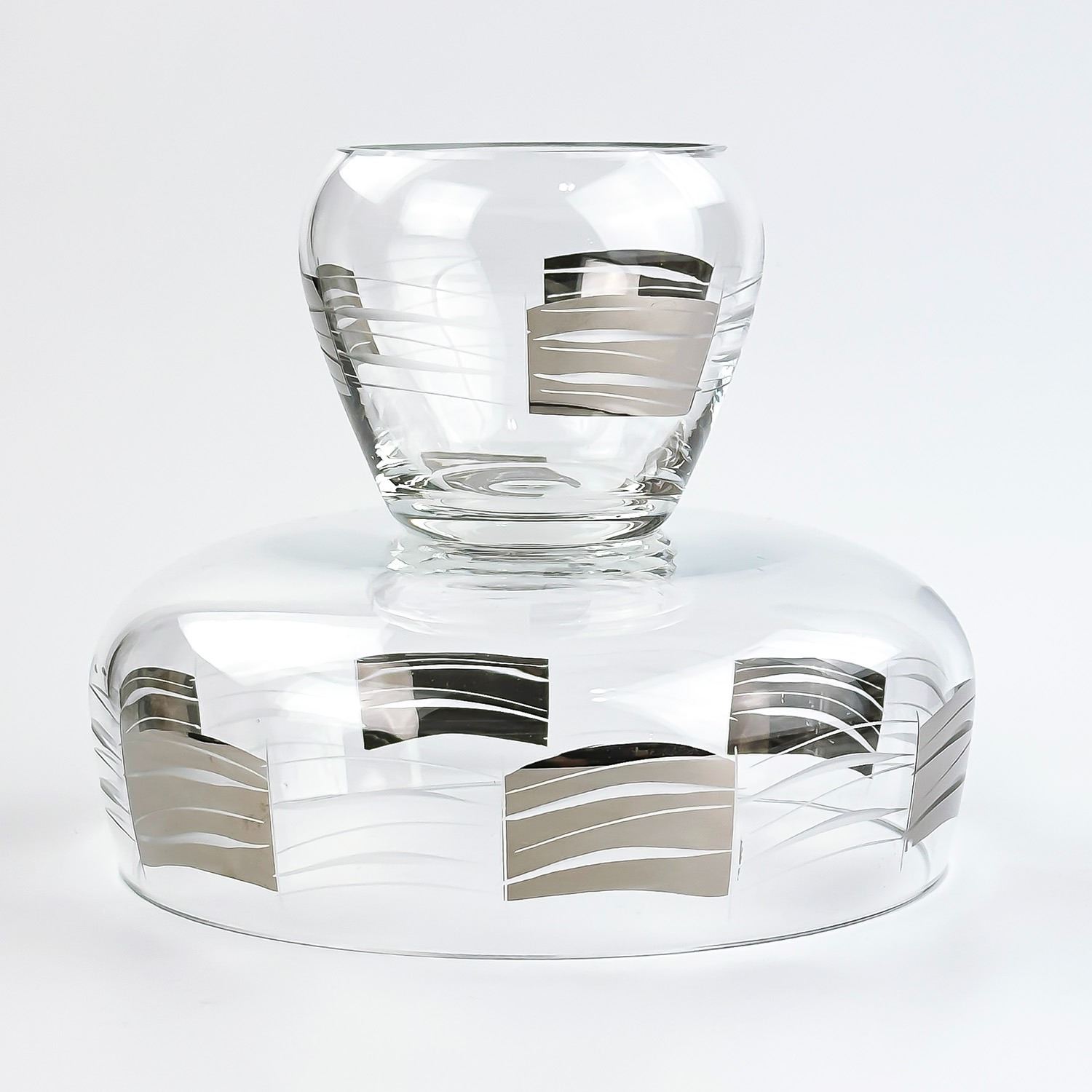 #8258 - UNSIGNED & UNMARKED - AGE & MAKER UNKNOWN. ETCHED CRYSTAL BOWL - SILVER OVERLAY. LARGE BOWL OR UPSIDE DOWN SMALL BOWL. HOME GLASSWARE, KITCHENWARE DECOR. MEASURES: 5.75” (14.5 CM) TALL - TOP WIDEST DIAMETER IS 7.25” (18.5 CM) AND BOTTOM WIDEST DIAMETER IS 3.75” (9.5 CM)