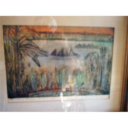 THIS I BELIEVE IS AN ETCHING DONE BY CECILE HOLZINGER OF THE HUDSON RIVER. IT IS #5 OF 12.THE WIDTH IS 17 3/4" BY 12 1/2" IN HEIGHT, WHILE THE FRAME IS 24 1/2" BY 19 1/2". IF YOU HAVE ANY QUESTIONS PLEASE E-MAIL ME