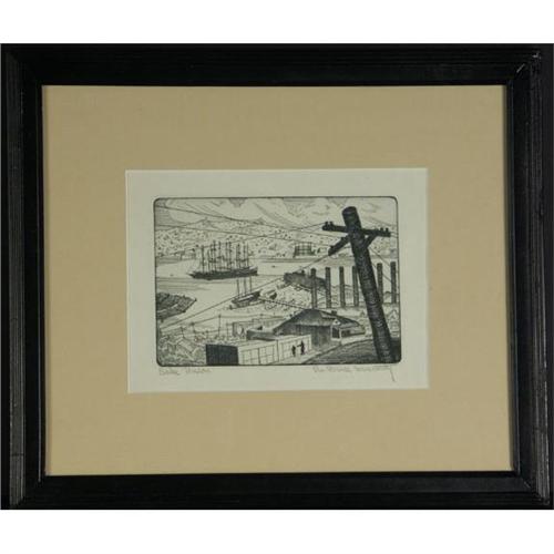 ETCHING, Robert Bruce Inverarity (1909-1999), WA/CA. ''Lake Union''. Signed lower right; titled lower left. Location and date ''1929'' on the verso. Matted and placed in a simple black wood frame. More info. at the front desk. 4.75'' x 7''(image size)/ 13'' x 15'' framed.