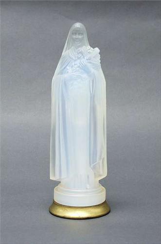 ETLING, FRANCE. A fine vitrine size opaline glass figure of the Madonna with a crucifix in her hand. Signed, 8 1/2" high. Circa 1935. 1000-1200