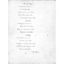 <b>1302. EUGENE FIELD </b>(1850 - 1895) American poet, best known for his children's verse "Little Boy Blue" and "Wynken, Blynken, and Nod". A fine and unusual A.Ms.S signed with a pseudonym "<i>Guy Wilson</i>" 1p. 4to., [n.p., n.d.], a poem entitled "Here in Illinois". The three stanza poem reads in part: "<i>Here in the land of promise / Under the glorious sky / Reaching awide ver shore and tide, / Ruler and bride, or thou abide, / And, heart of the west, beat high!...</i>". On the verso his son, Eugene Filed II, has added his authentication: "<i>This Manuscript is in the hand writing of my father, Eugene Field, and is signed in the name of `Guy Wilson Eugene Field II Sept. 1- 1923</i>" Although Field's son was known to have participated in forgeries of his father's poems, he did have access to a cache of genuine Field poems which he sold as well as his later forgeries. Because of this, we did consult an expert in Eugene Field who has found no evidence of forgery in this case. Bound into a red morocco book with gilt lettering. Horizontal and vertical creases, light soiling, otherwise very good condition.<b> $300-500</b>