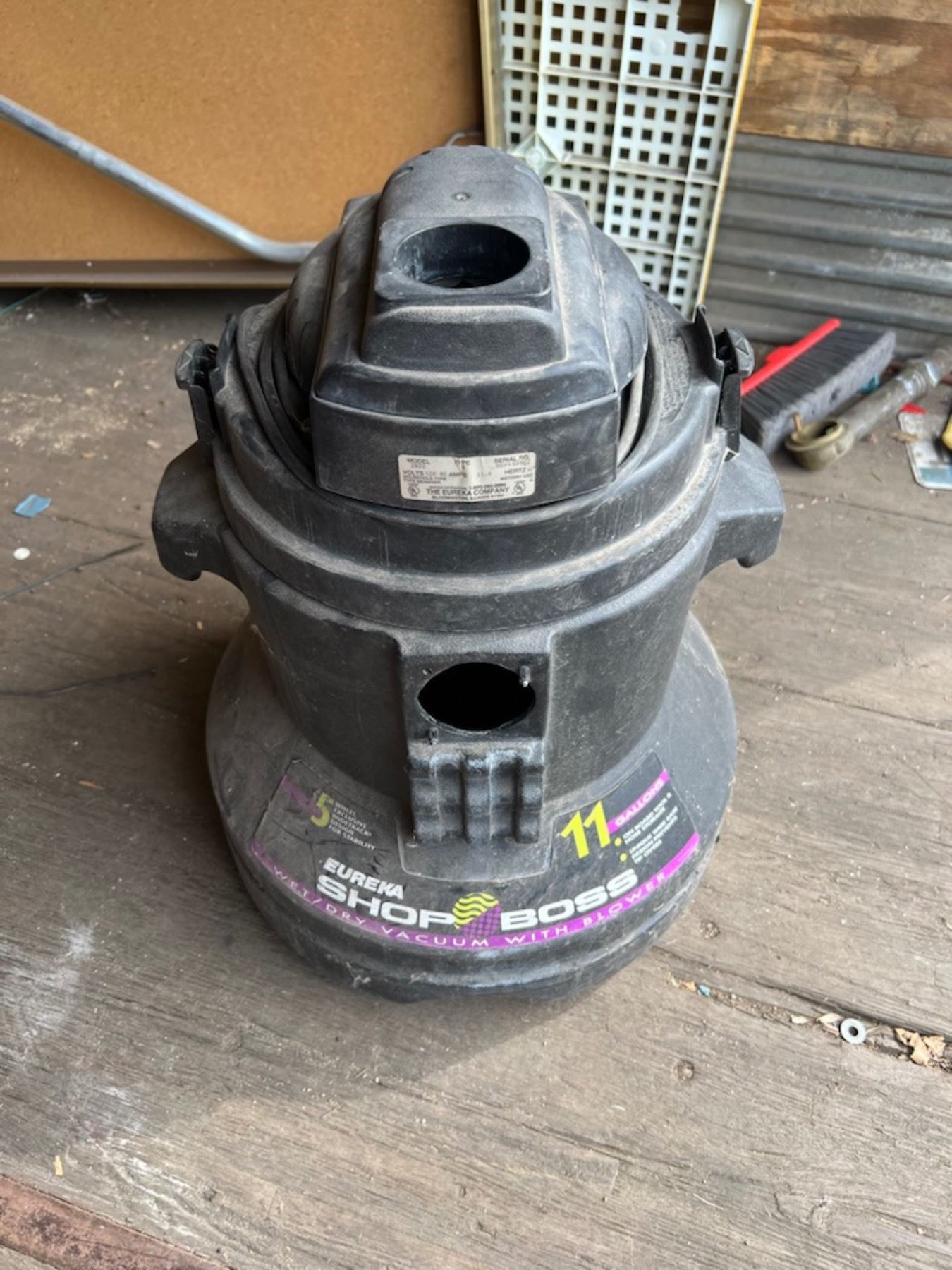 EUREKA SHOP BOSS WET/DRY VACUUM WITH BLOWER; 11 GALLON; WORKS