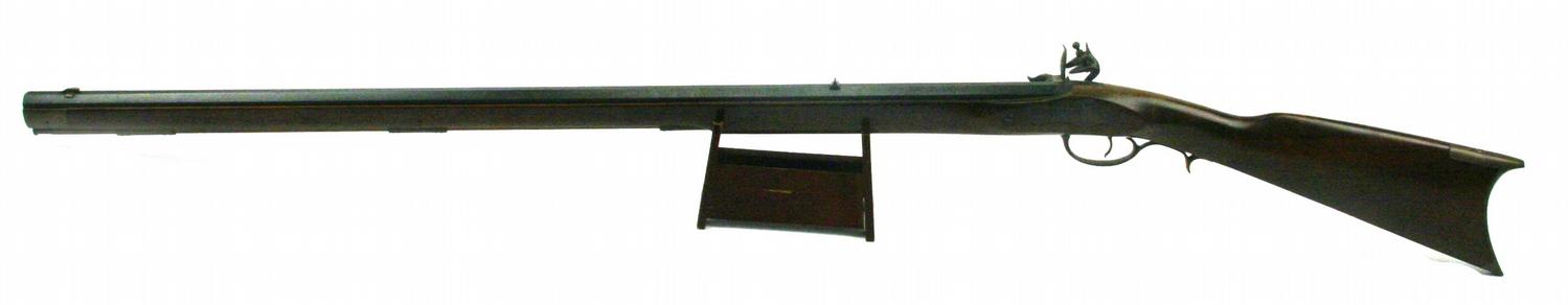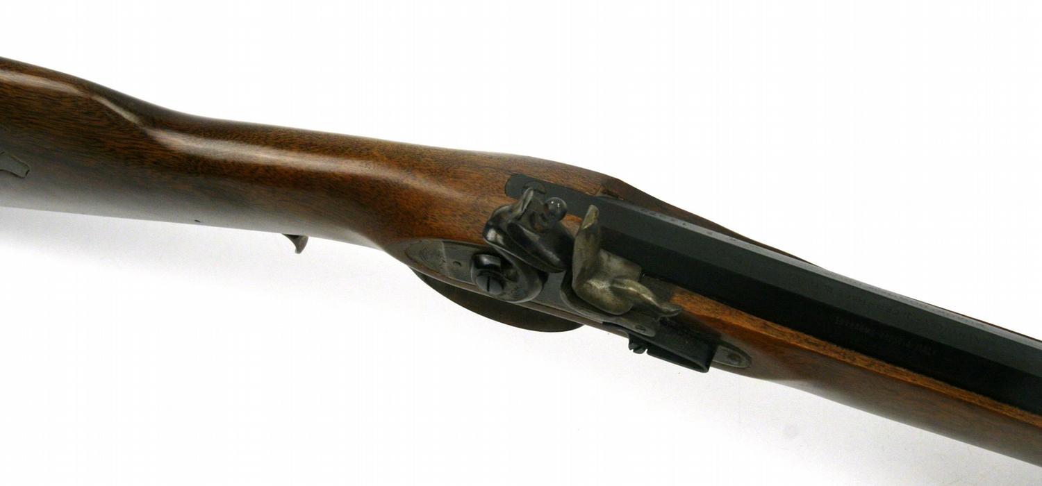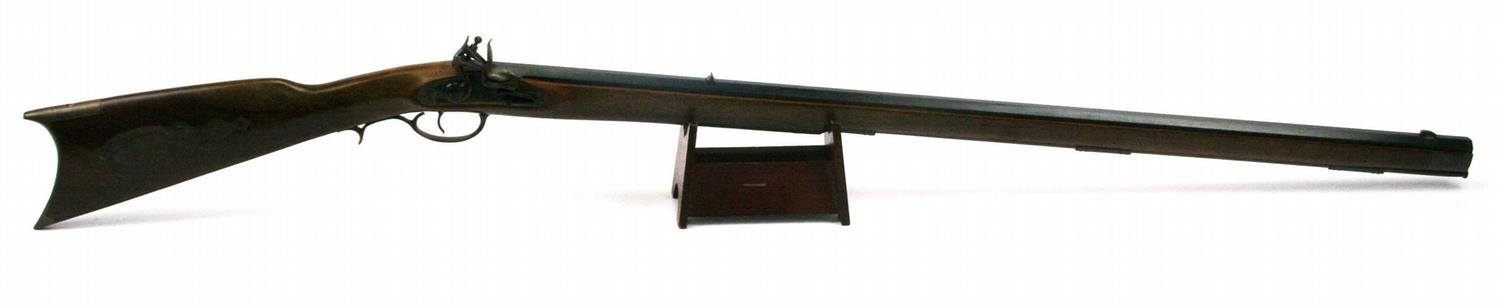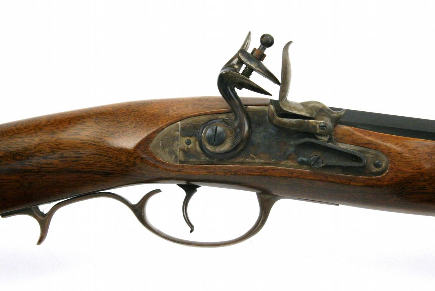 Quality 1970's era reproduction flintlock Kentucky rifle, manufactured by Euroarms, Italy. .45 caliber, 35 inch barrel, with dark hardwood stock. Bluing is 90%, bore appears good, and stock is very good. Overall very good condition.