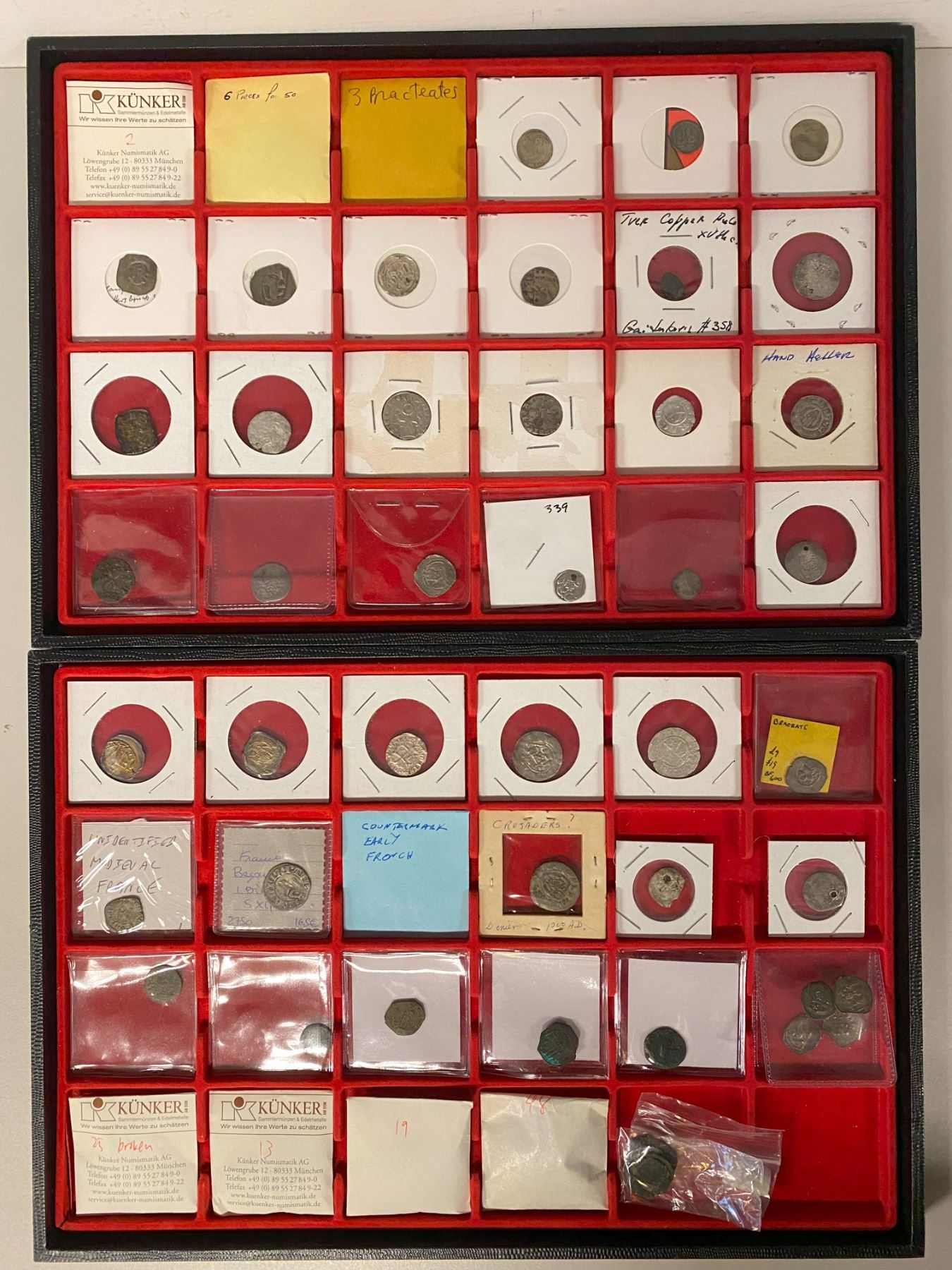 EUROPE: LOT of 166 medieval coins, mostly from German States, Hungary, France, Italian States, Austrian States from the 11th to 16th century, the majority smaller silvers; most unidentified though easily identifiable, some with basic identification; most in average conditions, some better, a few holed, 25 of the Hungarian silvers broken; retail value $500, lot of 166 pieces.