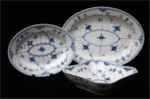 2 UPPLÄGGNINGSFAT, SKÅL, HALVBLOND, "MUSSELMALET" ROYAL COPENHAGEN, FAT, L33, 25, SKÅL D20