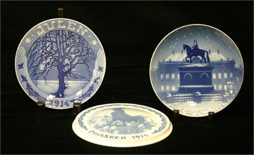 JULTALLRIK, ROYAL COPENHAGEN 1914, JULTALLRIK BING & GRÖNDAHL 1914, PÅSKPLAKETT BING & GRÖNDAHL 1914, D18-19 (3)