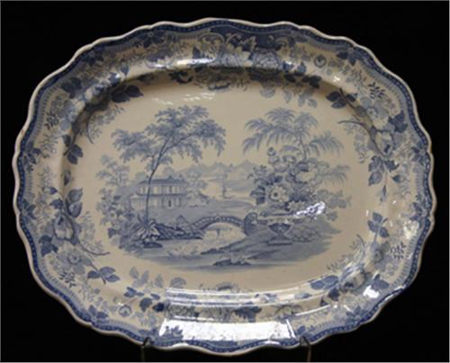 UPPLÄGGNINGSFAT, BLÅ DEKOR AV PARKLANDSKAP, ROYAL COTTAGE, ENGLAND 1800-TAL, B51